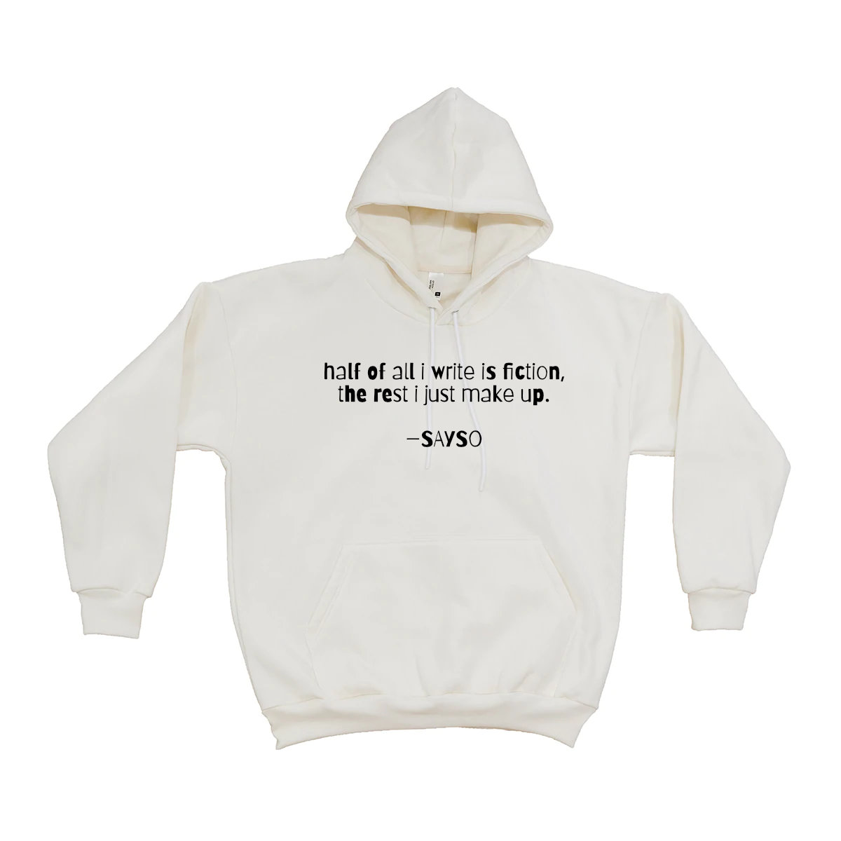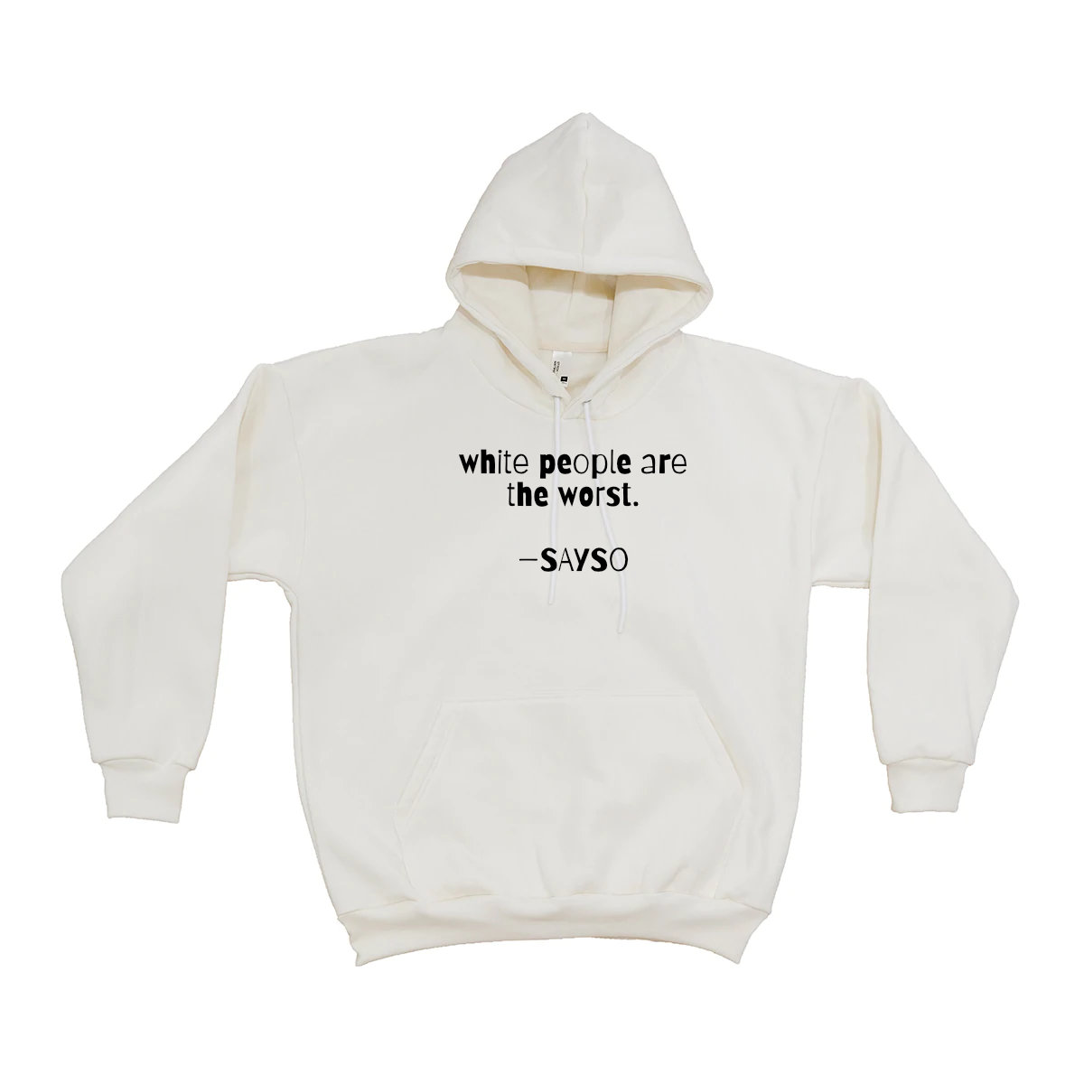 SAYSO Hoodies are made & printed in Wurundjeri Country. They're also 100% Ethically Certified, super fleecy, comfy, & super-sized. The style is "Box Hoodie" so the sizes are big & baggy (probs buy 1 size smaller than norm) and most are printed front & back.